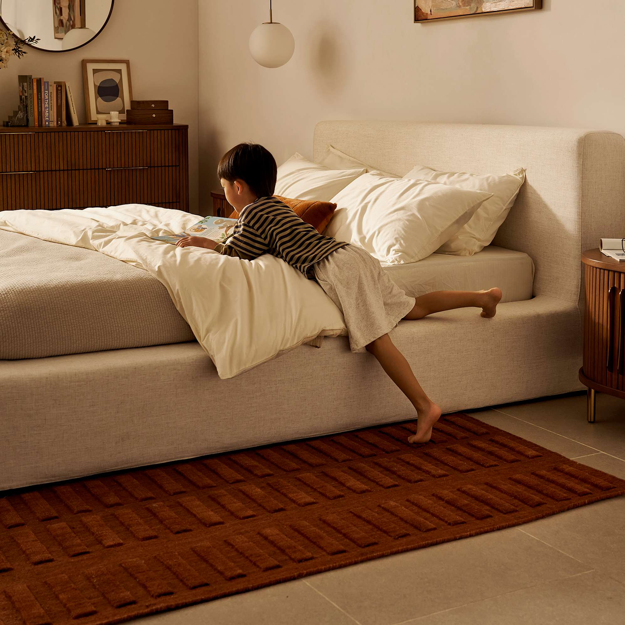 A streamlined, low-profile frame that’s made for all the little humans and furry friends who like to sneak into bed for a cuddle.