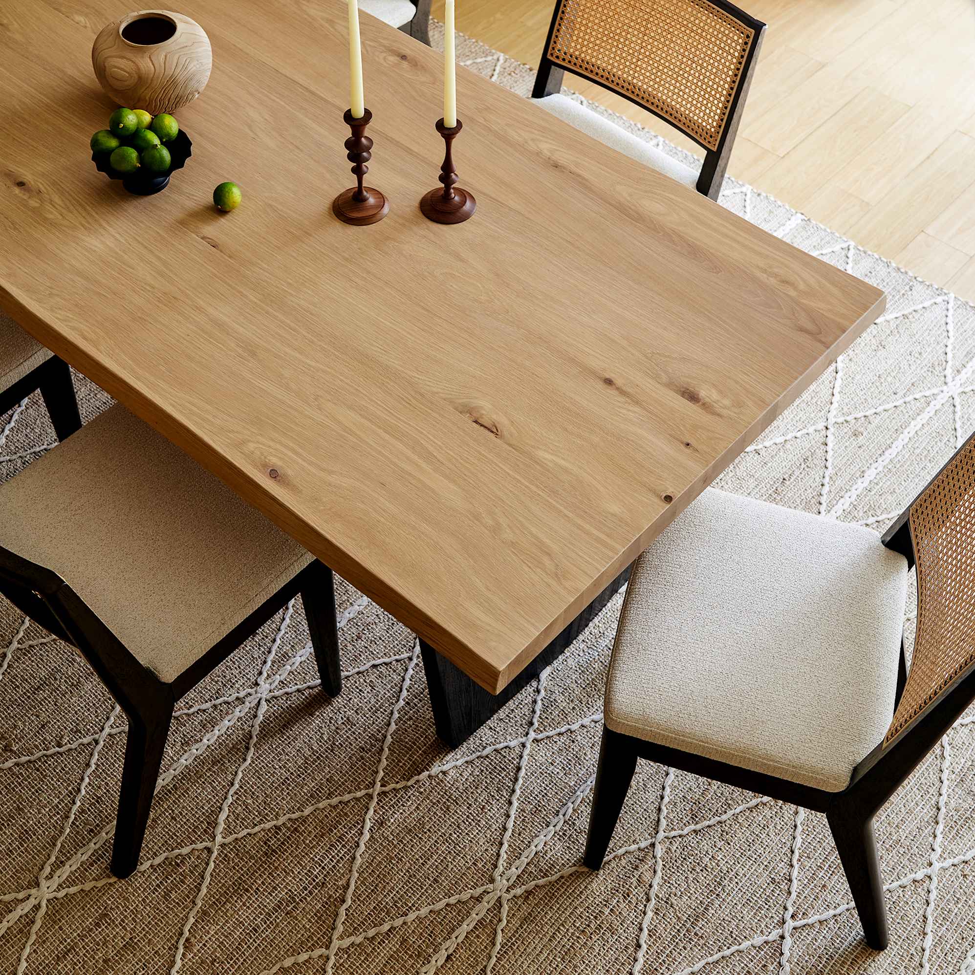 Wire-brushed elm wood brings tactile warmth and everyday resilience. Its textured surface hides the inevitable scratches and scuffs, keeping your table beautiful through years of real use.